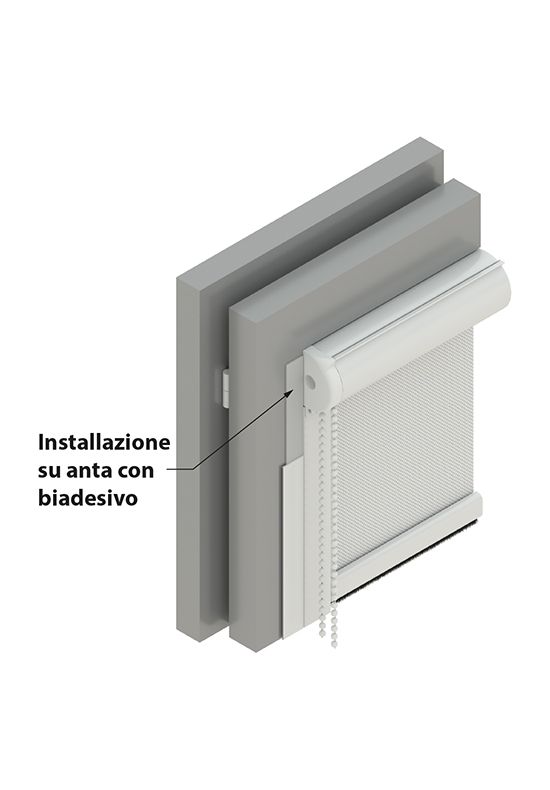 Grazie ai sistemi di montaggio “No Fori”, le tende a rullo a vetro con cassonetto e tessuto oscurante possono essere installate in qualsiasi ambiente, senza causare danni all’infisso.